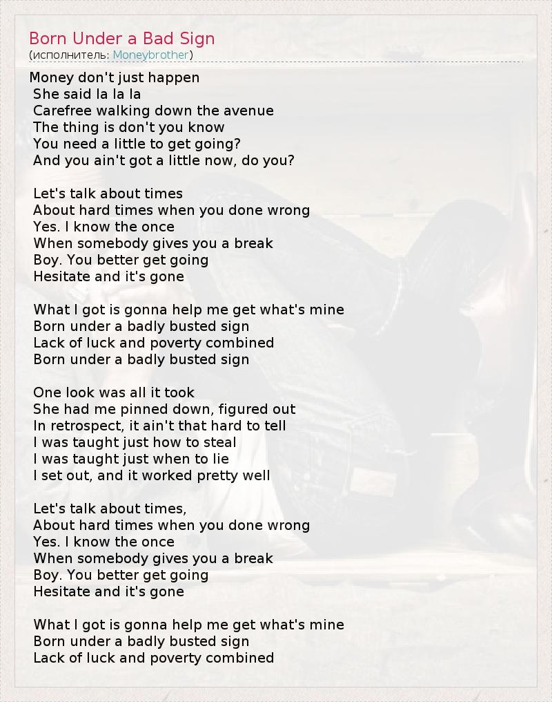 А как ты думаешь, о чем песня "Born Under a Bad Sign" ?