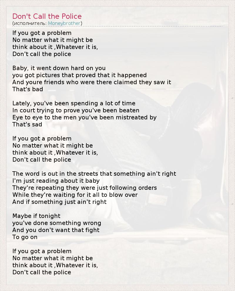 А как ты думаешь, о чем песня "Don't Call the Police" ?
