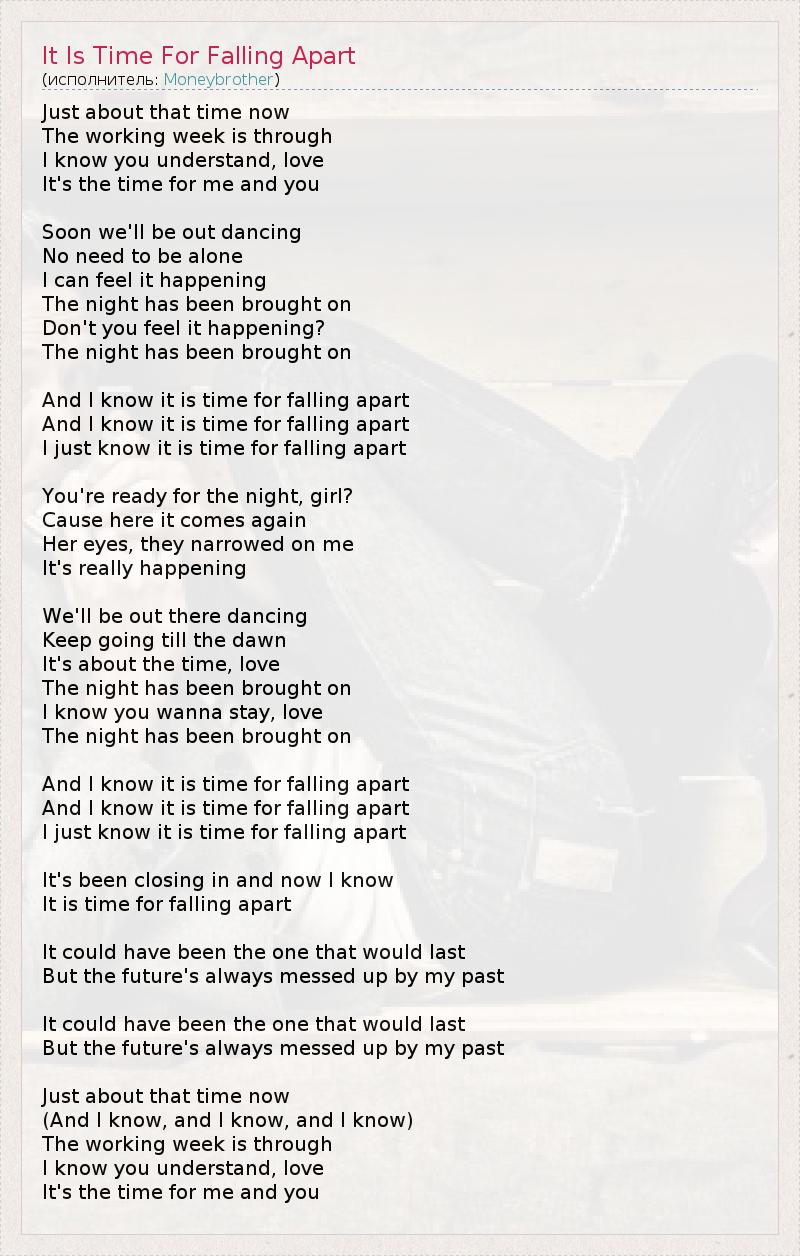 А как ты думаешь, о чем песня "It Is Time For Falling Apart" ?