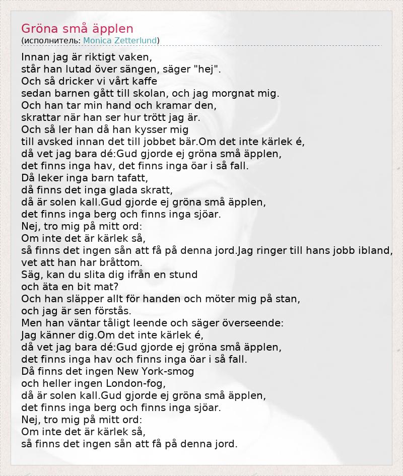 А как ты думаешь, о чем песня "Gröna små äpplen" ?