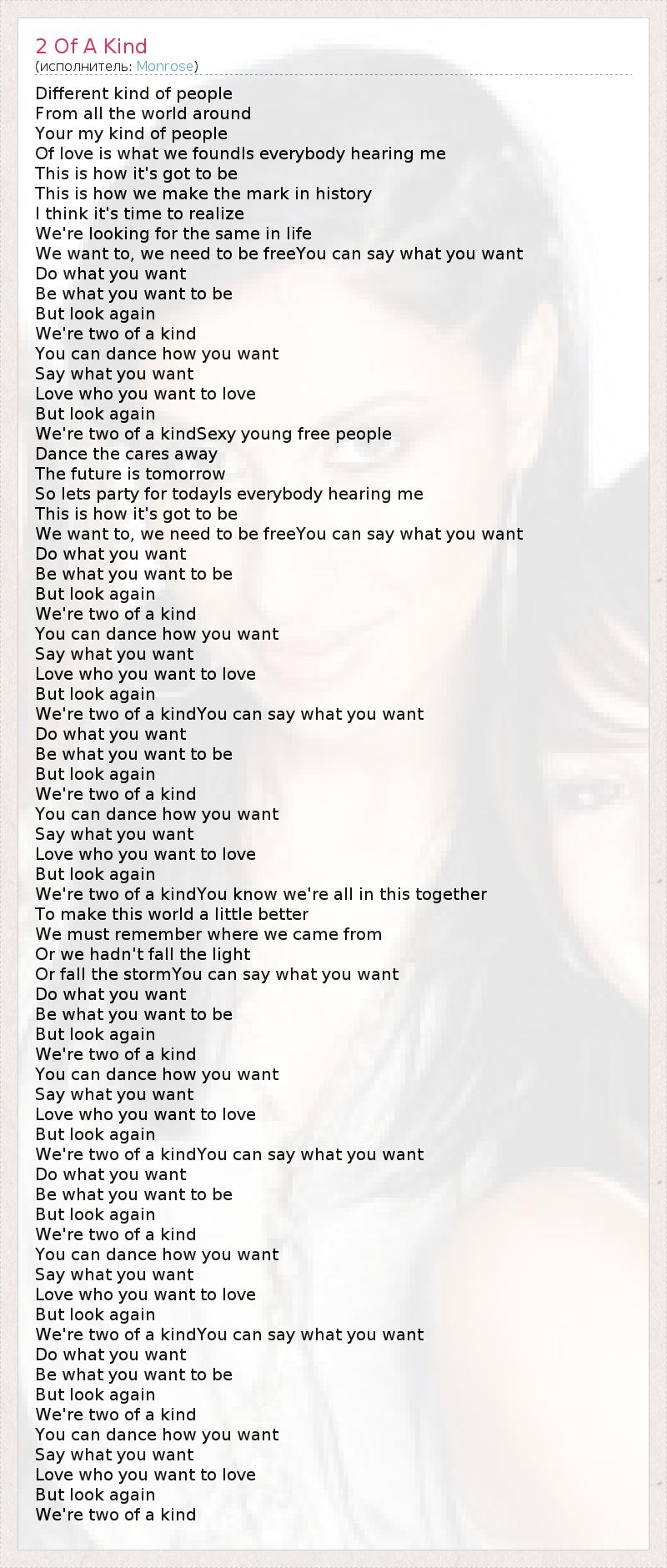 А как ты думаешь, о чем песня "2 Of A Kind" ?