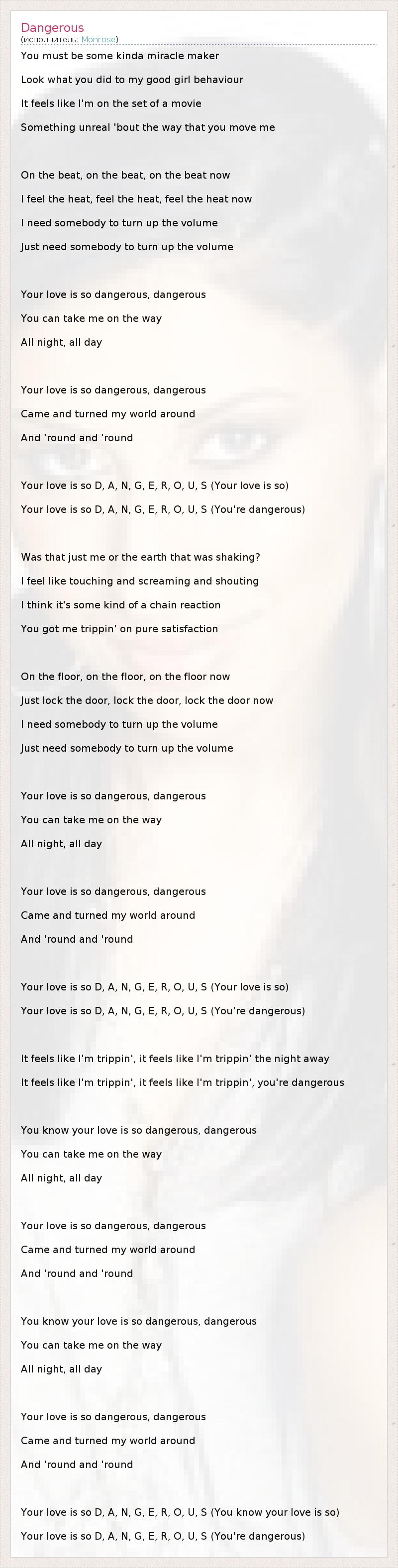 Your love is so D, A, N, G, E, R, O, U, S (You're dangerous)