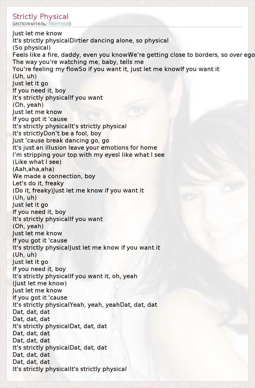 А как ты думаешь, о чем песня "Strictly Physical" ?