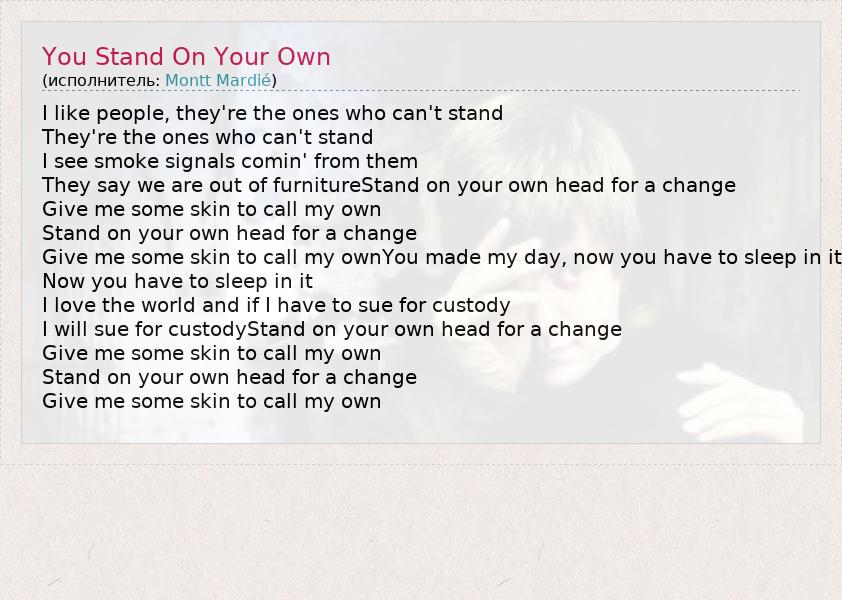 А как ты думаешь, о чем песня "You Stand On Your Own" ?