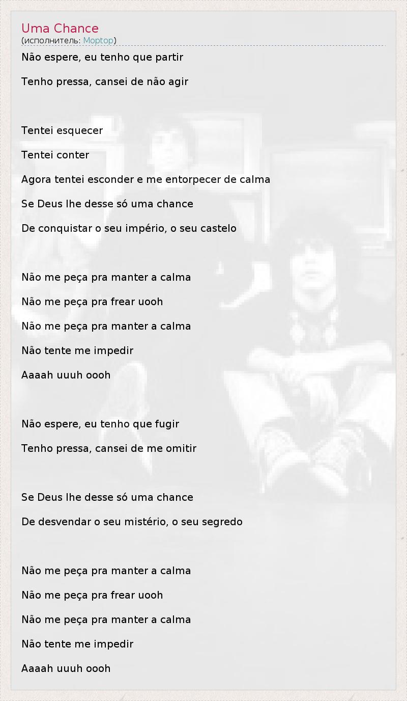 А как ты думаешь, о чем песня "Uma Chance" ?