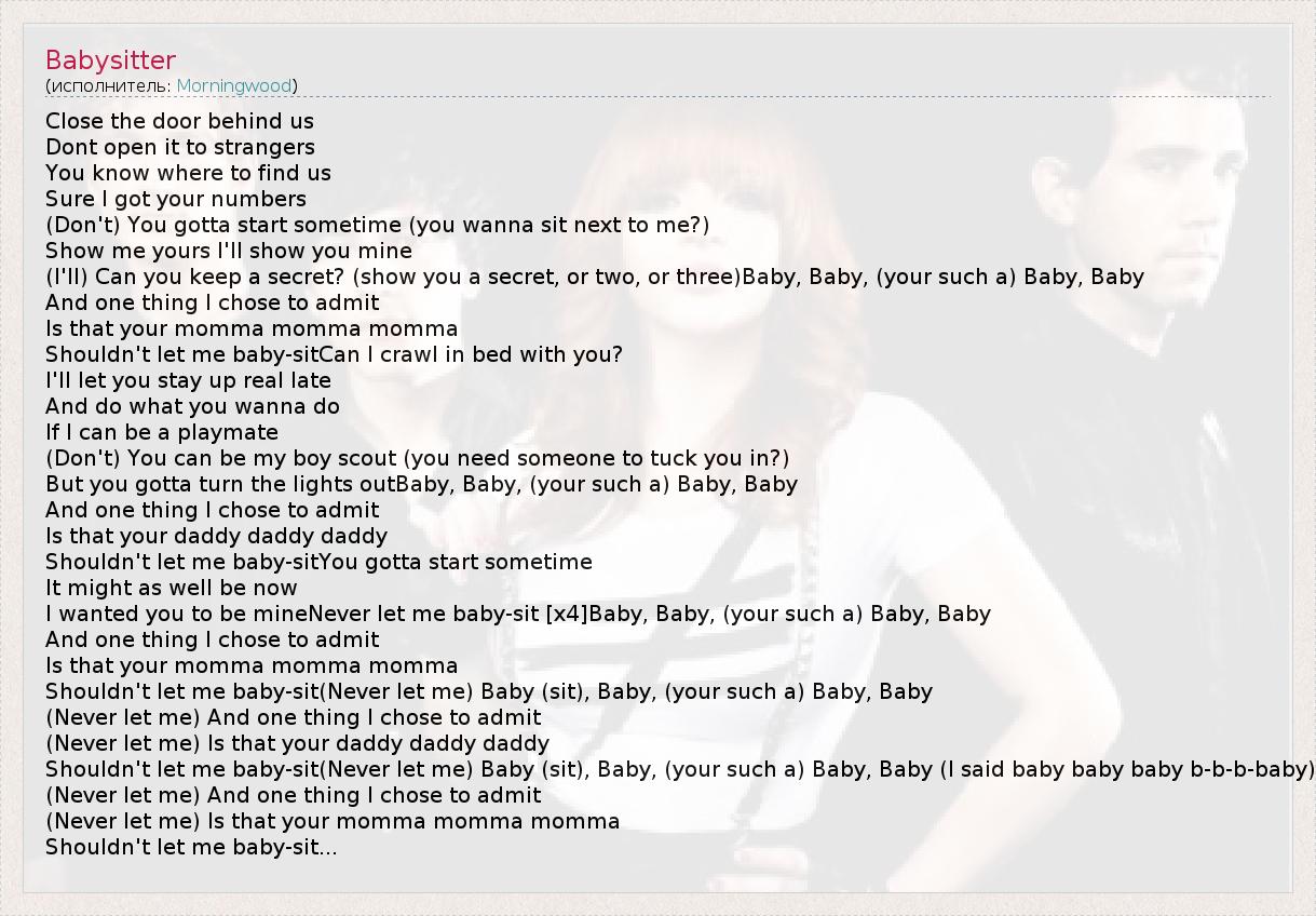 I wanted you to be mineNever let me baby-sit [x4]Baby, Baby, (your such a) Baby, Baby