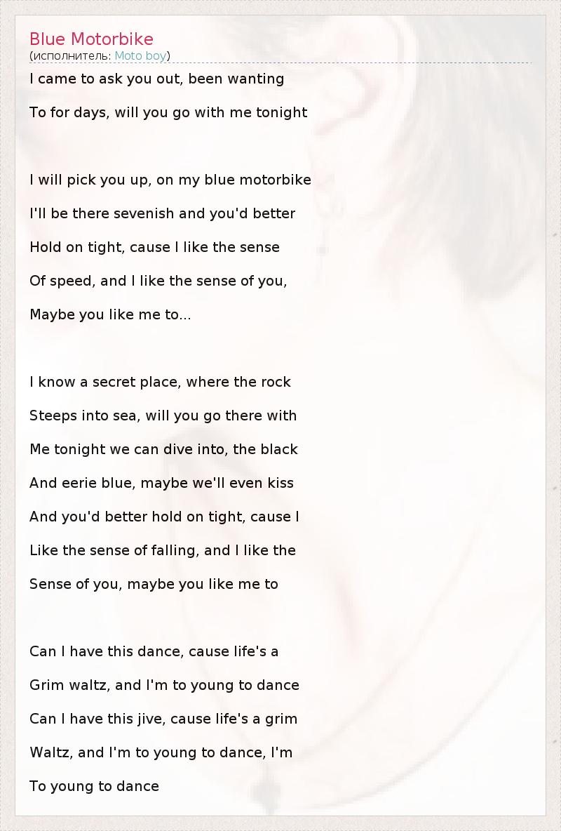 А как ты думаешь, о чем песня "Blue Motorbike" ?