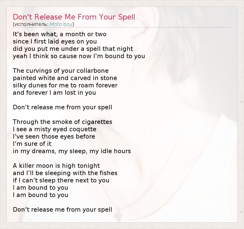 А как ты думаешь, о чем песня "Don't Release Me From Your Spell" ?