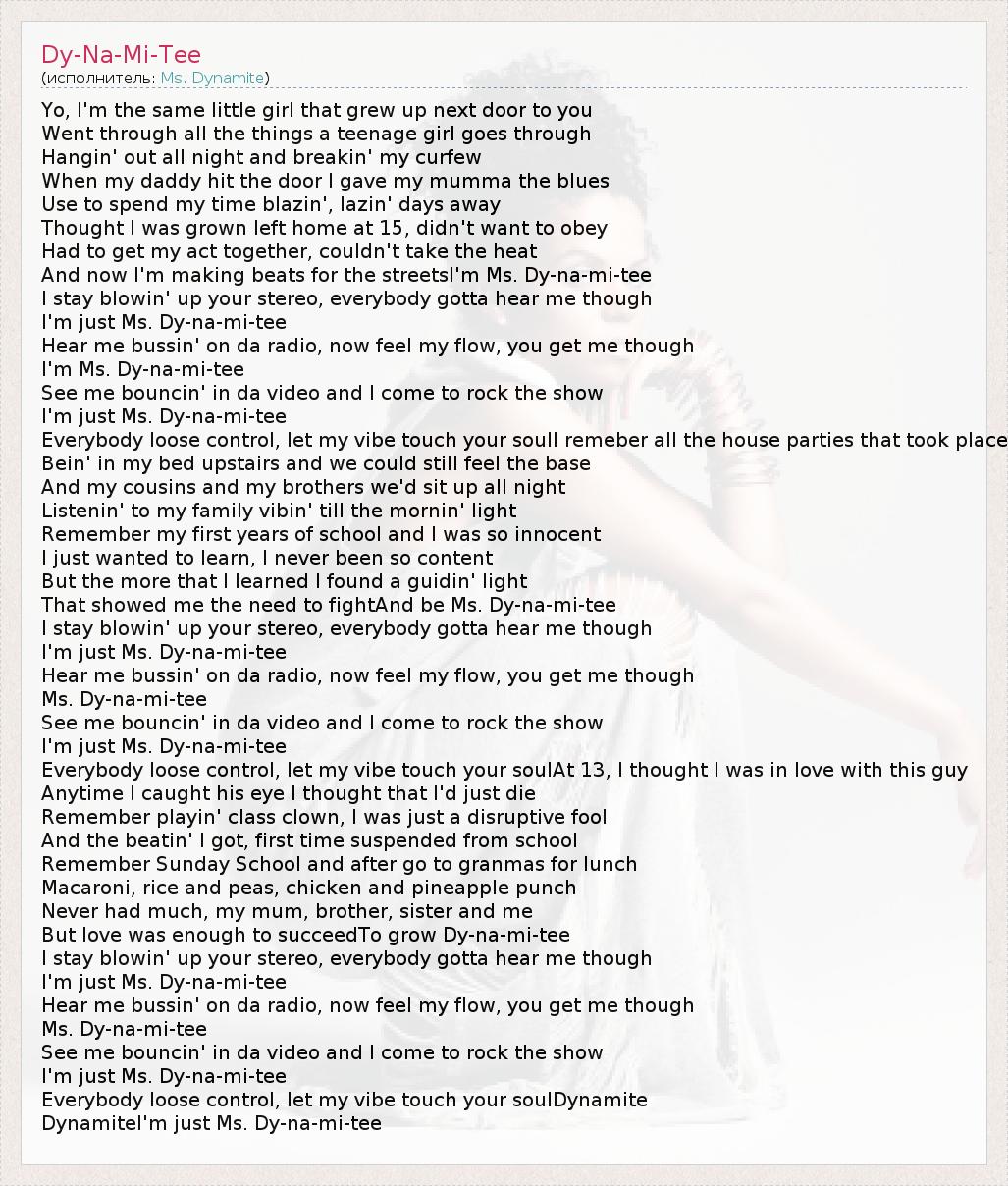 А как ты думаешь, о чем песня "Dy-Na-Mi-Tee" ?