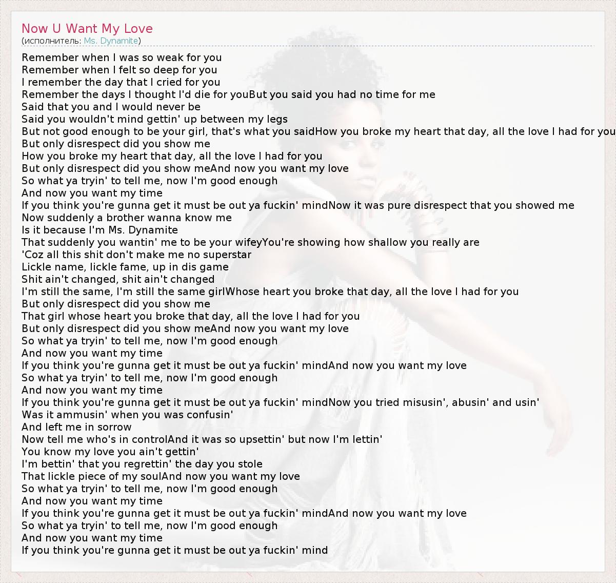 А как ты думаешь, о чем песня "Now U Want My Love" ?