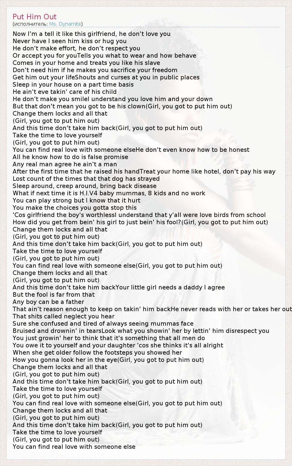 А как ты думаешь, о чем песня "Put Him Out" ?