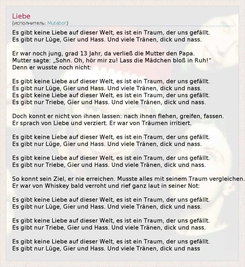 Es gibt nur Lüge, Gier und Hass. Und viele Tränen, dick und nass.