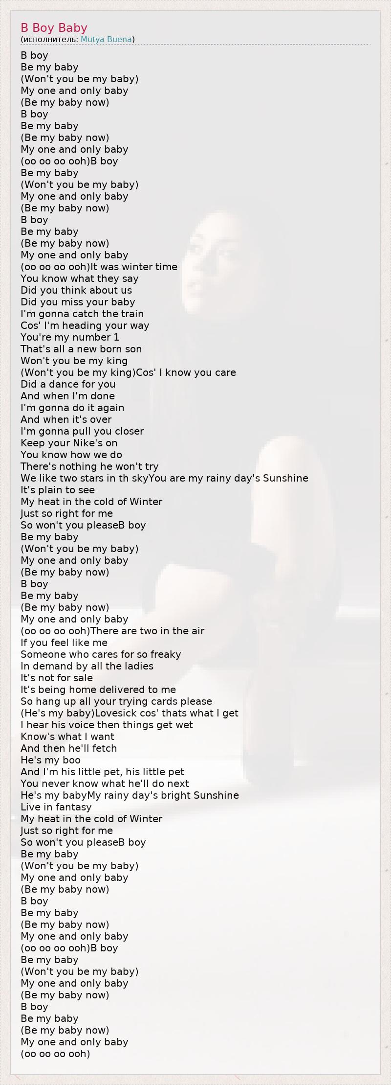 А как ты думаешь, о чем песня "B Boy Baby" ?