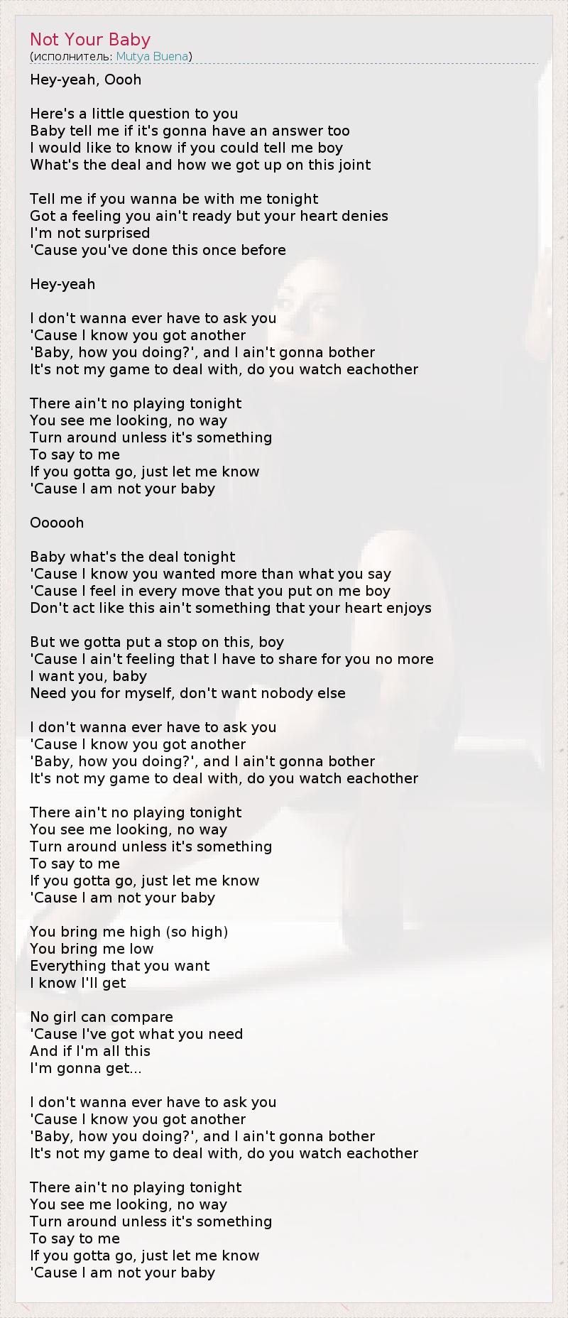 А как ты думаешь, о чем песня "Not Your Baby" ?