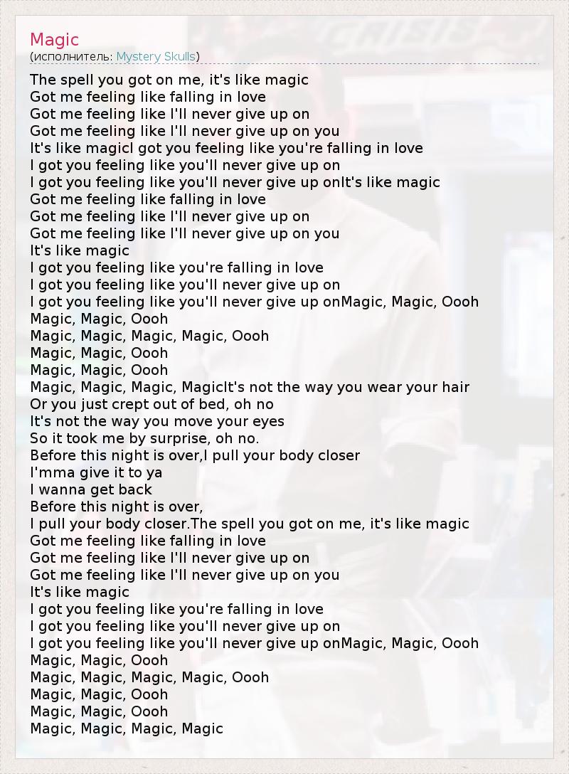 I got you feeling like you'll never give up onMagic, Magic, Oooh