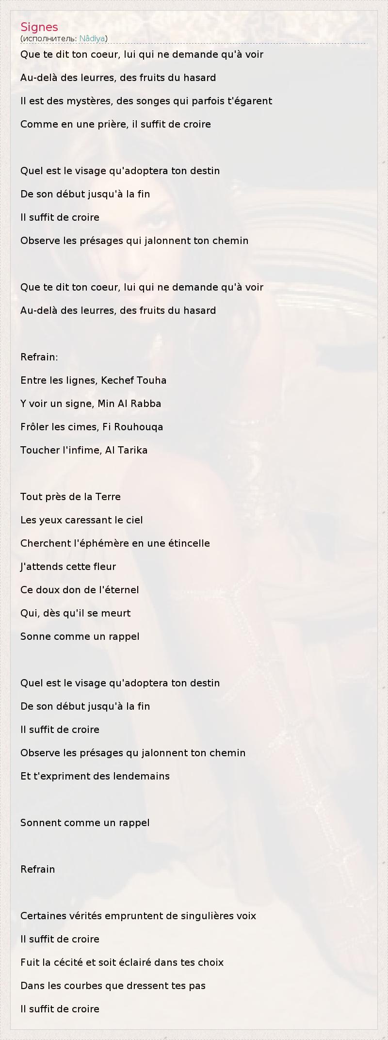Это интересно:Музыкой Nadiya занялась не сразу. Сначала она делала то, что у неё получалось хорошо - занималась лёгкой атлетикой. Здесь Nadiya добилась серьёзных успехов, в 16-летнем возрасте став чемпионкой Франции в беге на 800 метров. Но этого ей было мало. Она хотела быть звездой, но не в мире спорта, а в музыке. Поэтому и переехала в Париж, когда ей было 20. У Nadiya алжирские корни. В семье было 6 детей, может быть,... продолжение