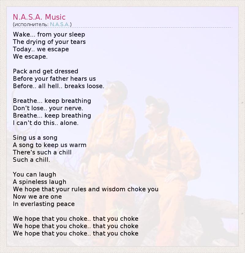 А как ты думаешь, о чем песня "N.A.S.A. Music" ?