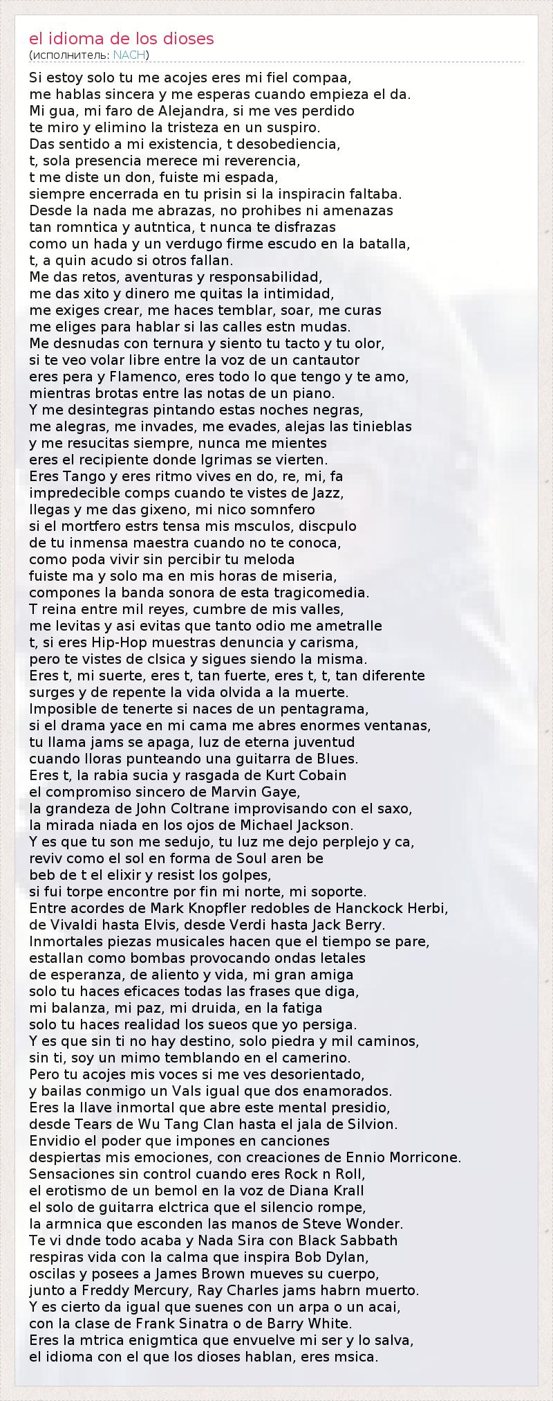 А как ты думаешь, о чем песня "el idioma de los dioses" ?