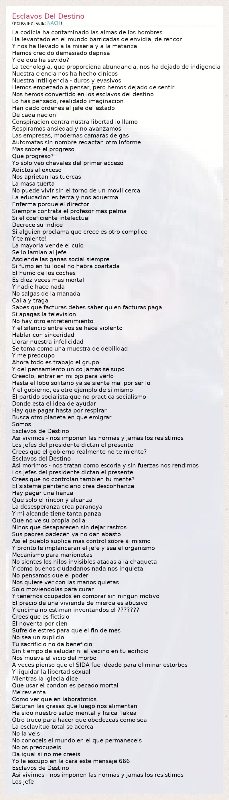 ГлавнаяИсполнителиNACHEsclavos Del Destino