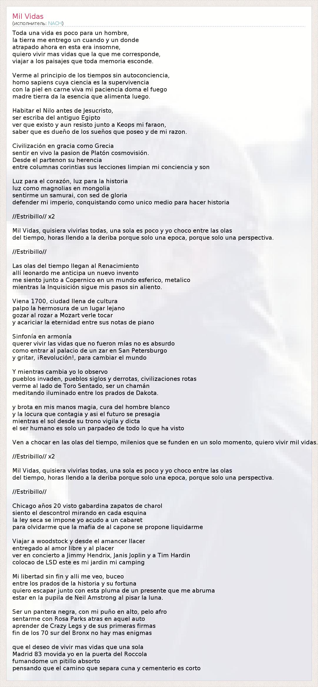 А как ты думаешь, о чем песня "Mil Vidas" ?