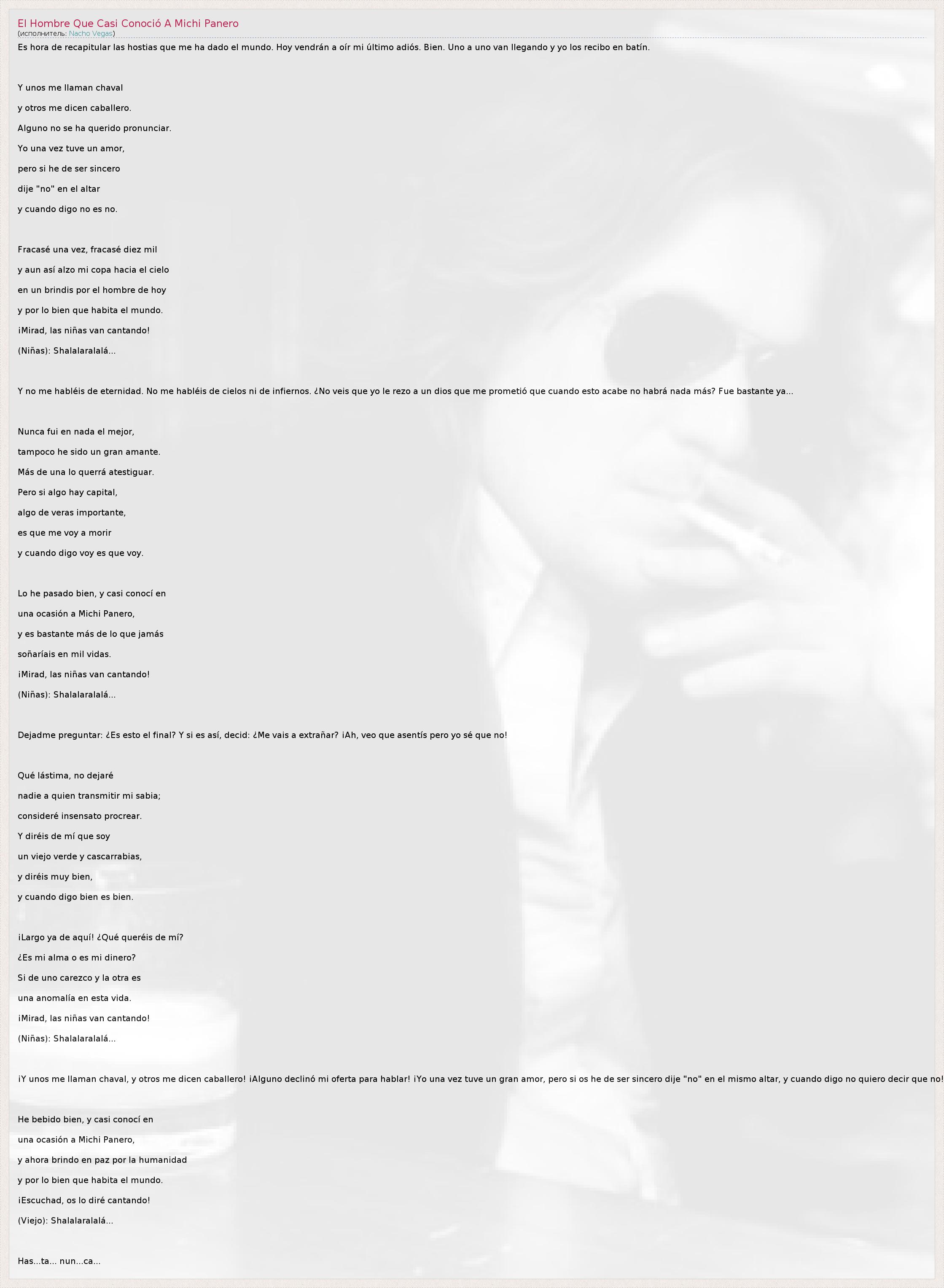 А как ты думаешь, о чем песня "El Hombre Que Casi Conoció A Michi Panero" ?