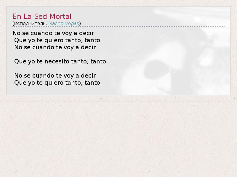 А как ты думаешь, о чем песня "En La Sed Mortal" ?