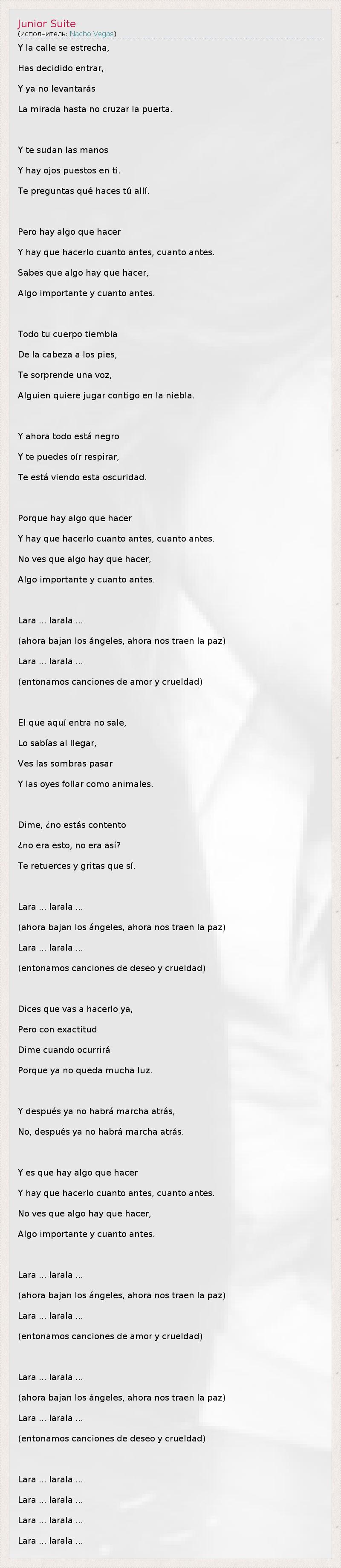 А как ты думаешь, о чем песня "Junior Suite" ?
