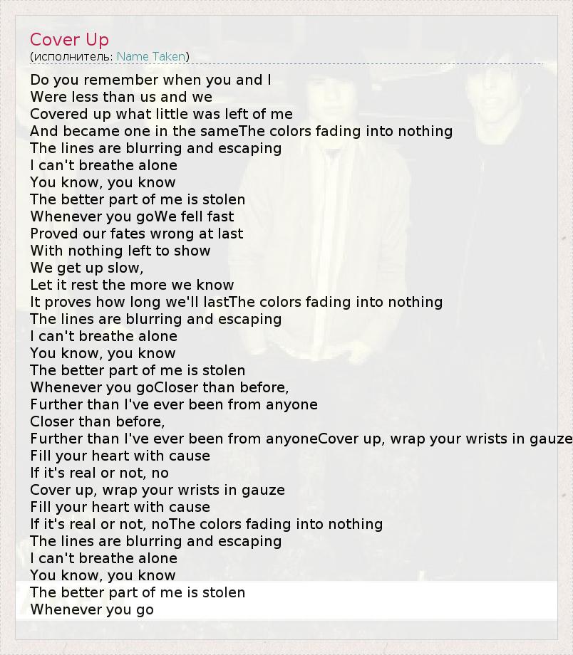 Further than I've ever been from anyoneCover up, wrap your wrists in gauze