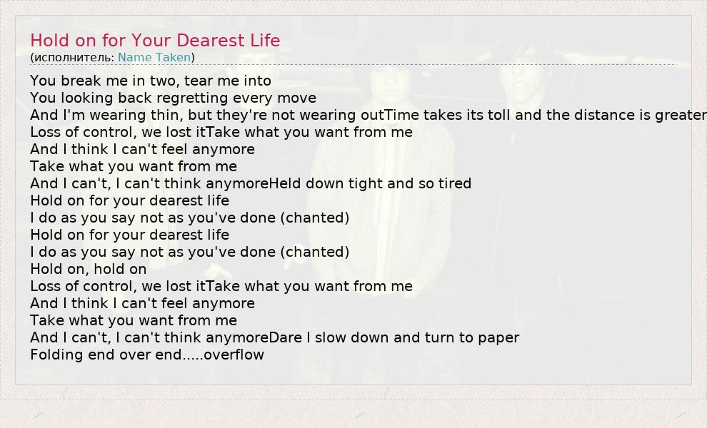 А как ты думаешь, о чем песня "Hold on for Your Dearest Life" ?