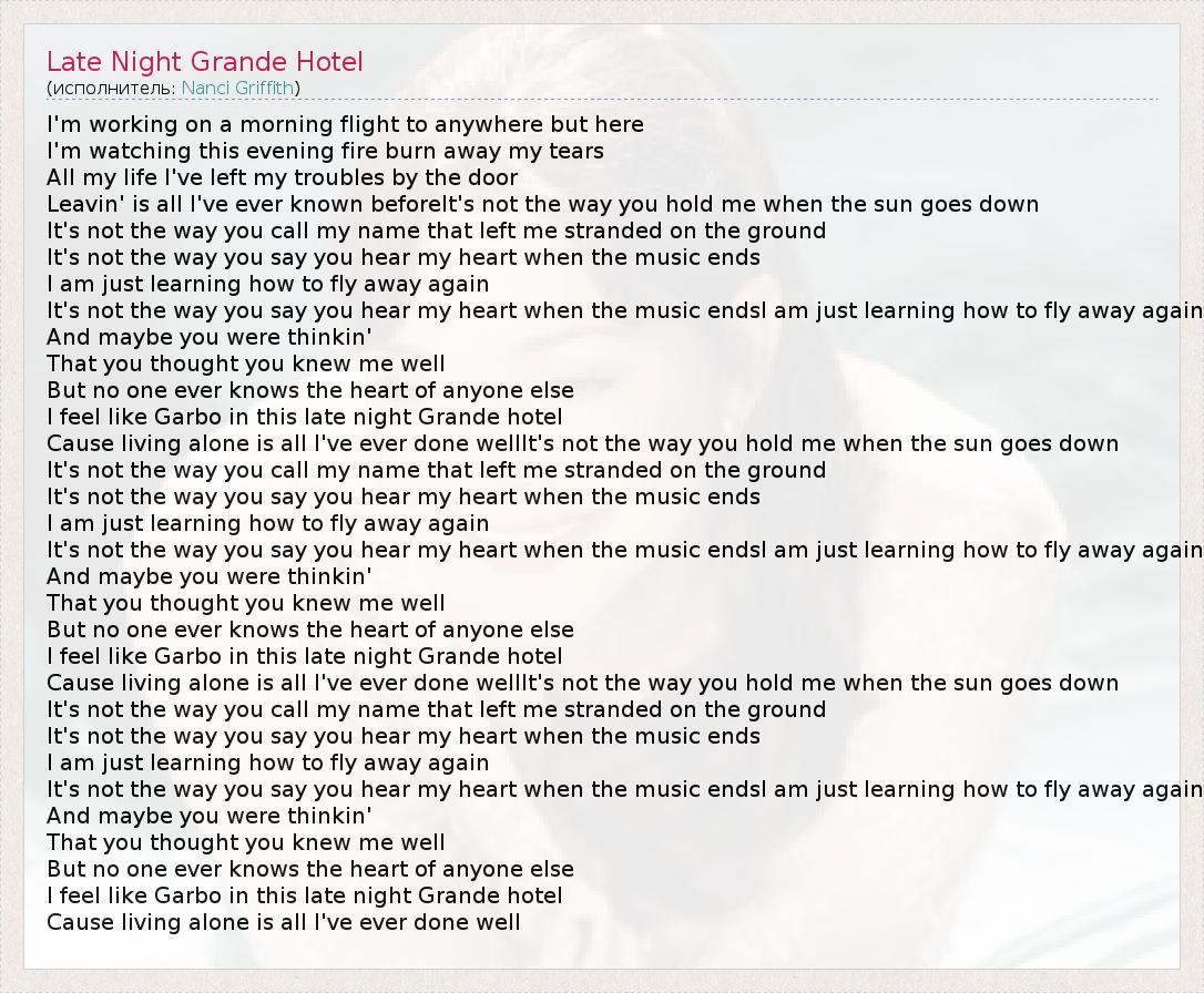 А как ты думаешь, о чем песня "Late Night Grande Hotel" ?