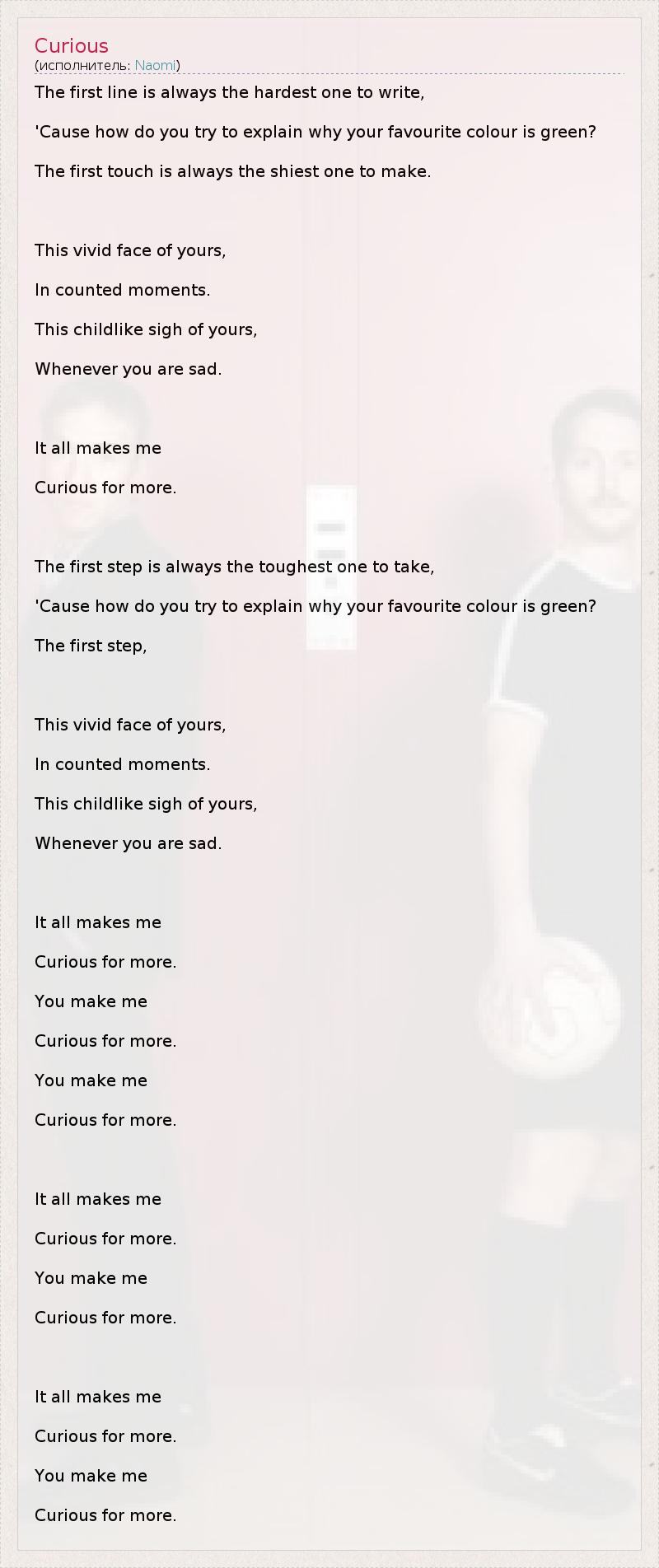 А как ты думаешь, о чем песня "Curious" ?