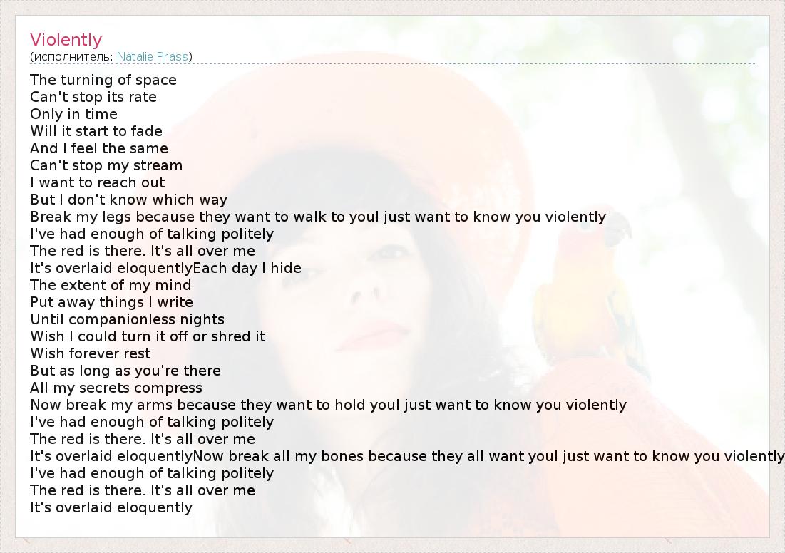 It's overlaid eloquentlyNow break all my bones because they all want youI just want to know you violently