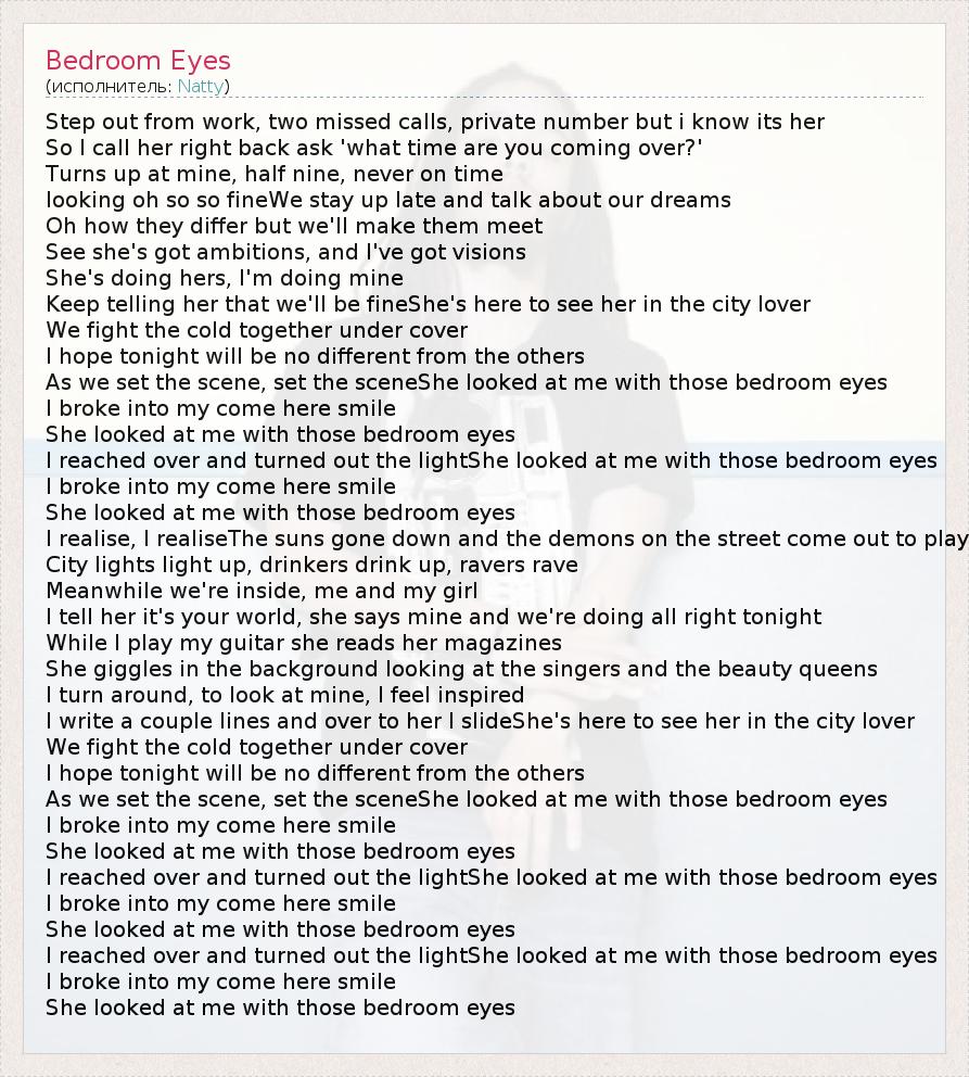 А как ты думаешь, о чем песня "Bedroom Eyes" ?