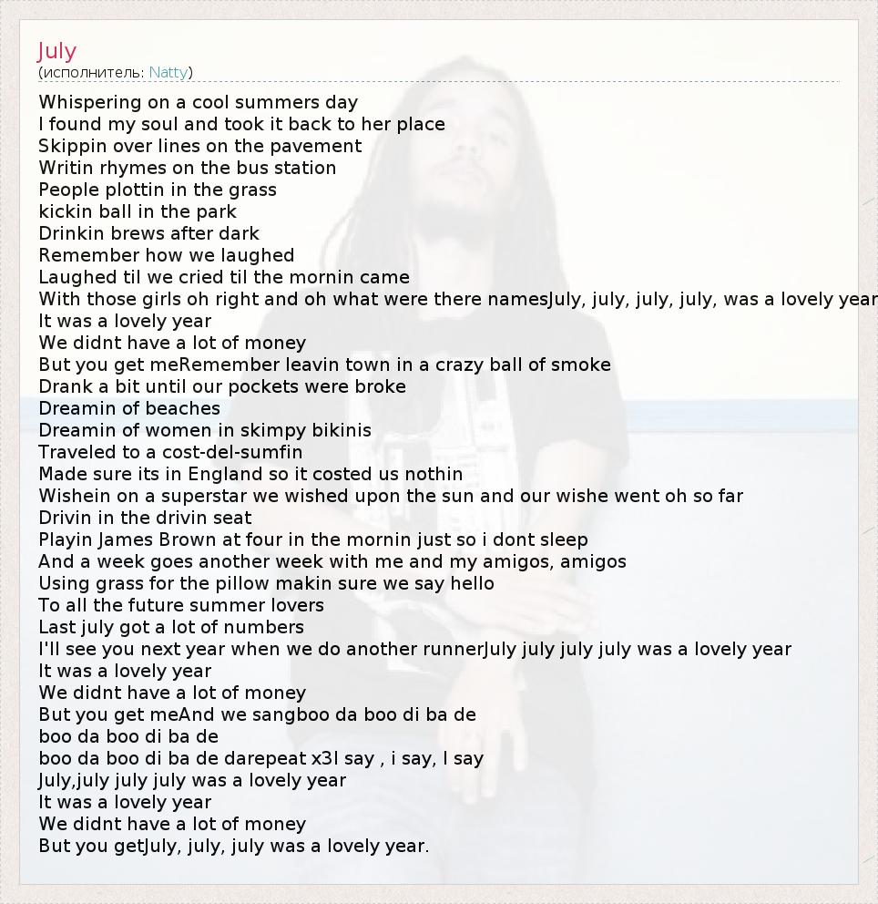 With those girls oh right and oh what were there namesJuly, july, july, july, was a lovely year