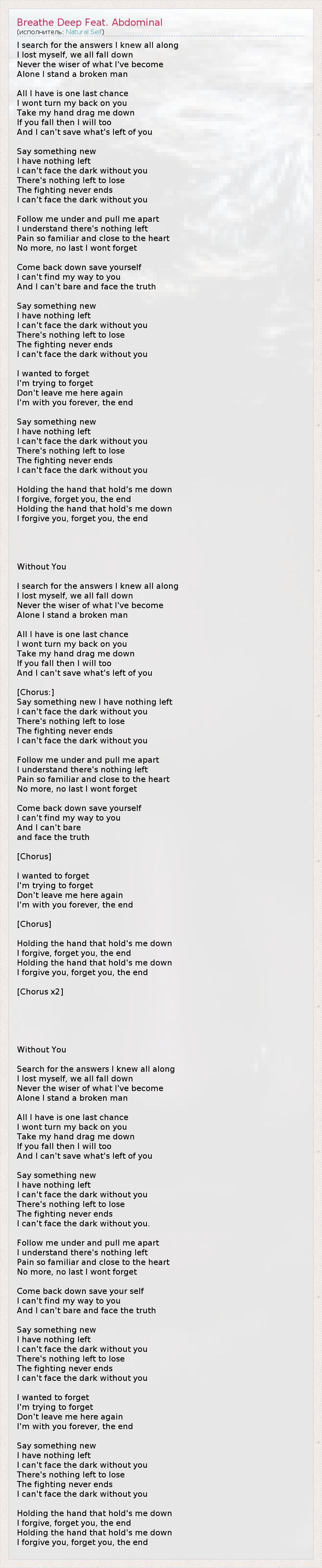 А как ты думаешь, о чем песня "Breathe Deep Feat. Abdominal" ?