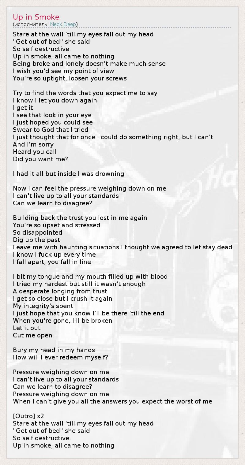 А как ты думаешь, о чем песня "Up in Smoke" ?