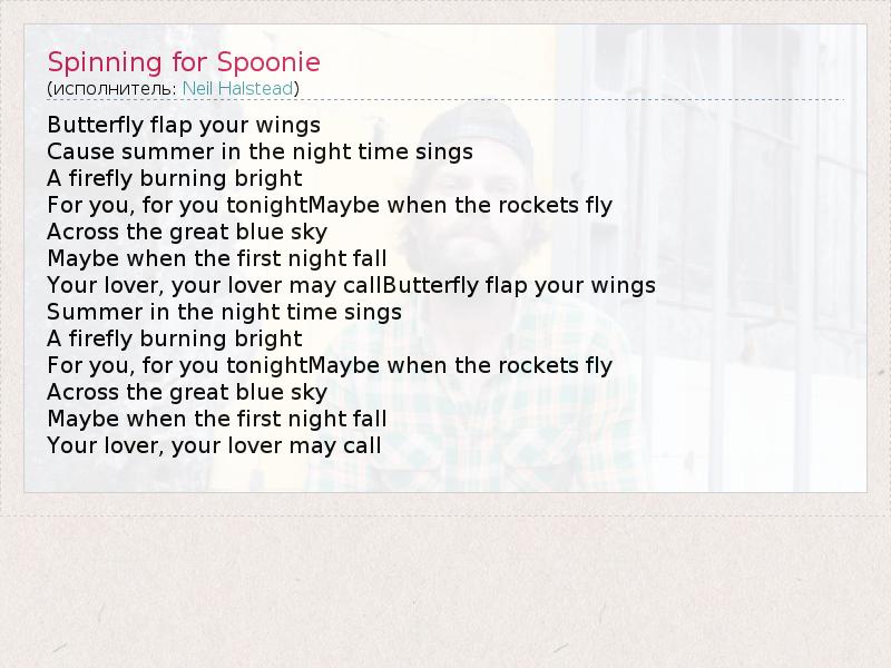 А как ты думаешь, о чем песня "Spinning for Spoonie" ?