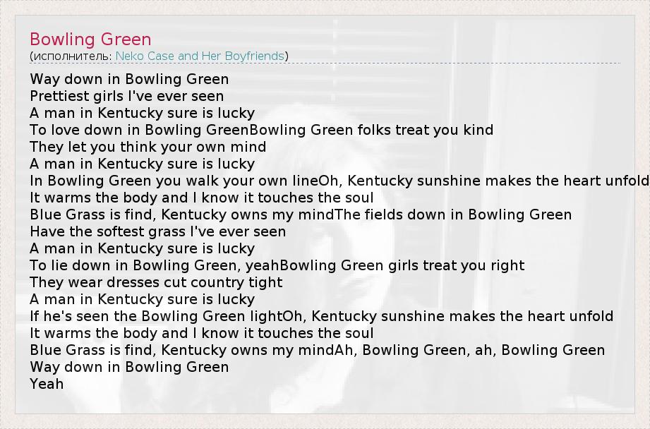 А как ты думаешь, о чем песня "Bowling Green" ?