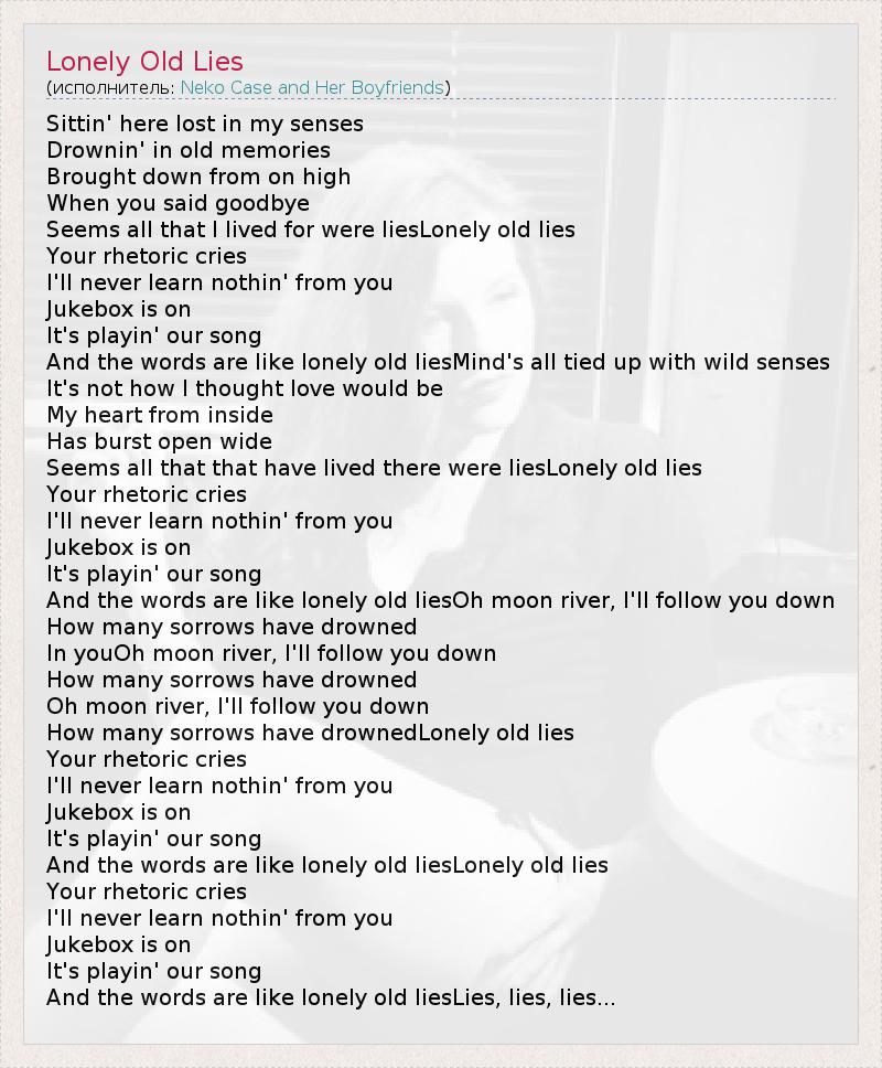 А как ты думаешь, о чем песня "Lonely Old Lies" ?