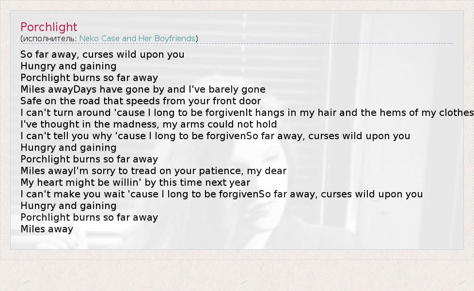 А как ты думаешь, о чем песня "Porchlight" ?