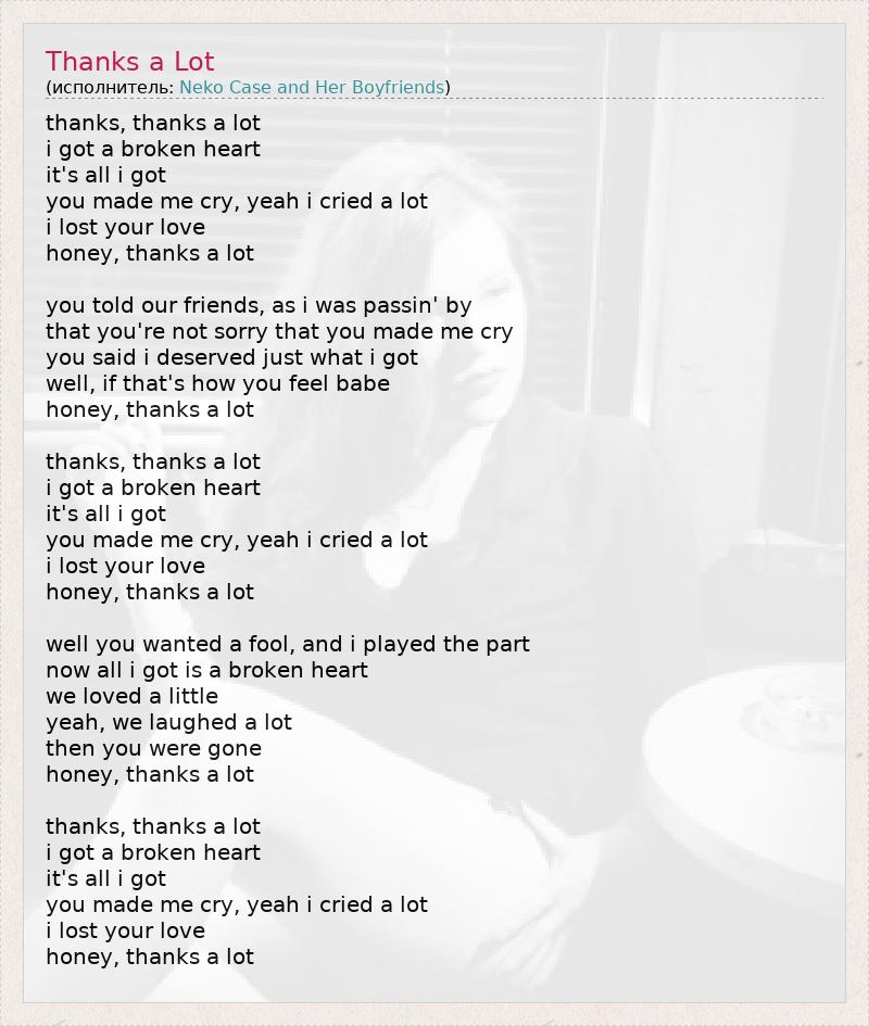 А как ты думаешь, о чем песня "Thanks a Lot" ?