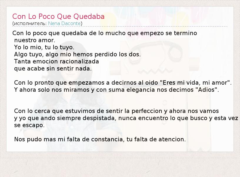А как ты думаешь, о чем песня "Con Lo Poco Que Quedaba" ?
