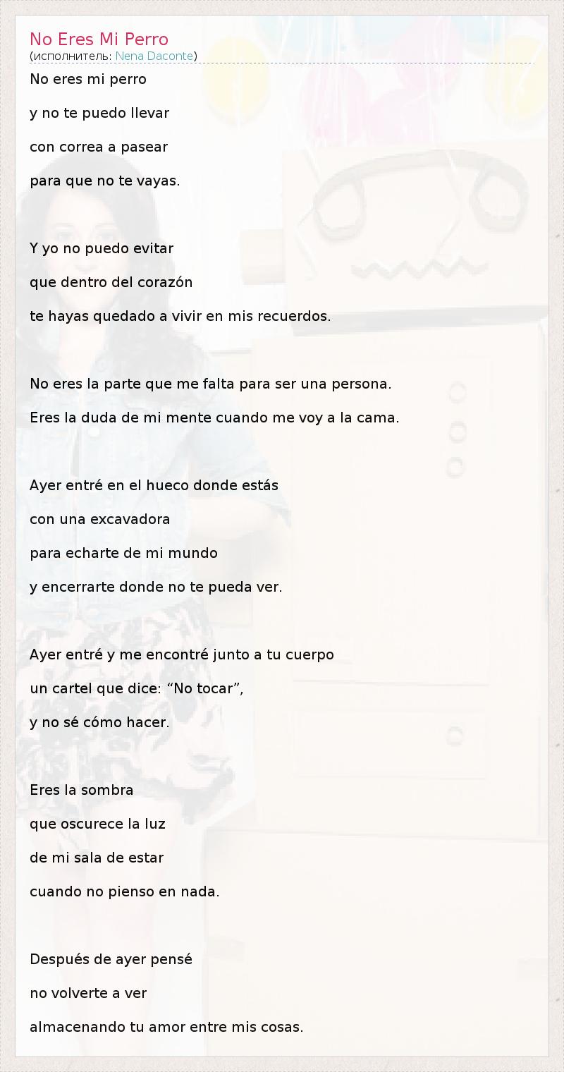 А как ты думаешь, о чем песня "No Eres Mi Perro" ?