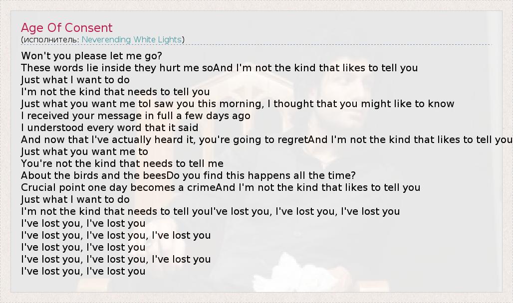 А как ты думаешь, о чем песня "Age Of Consent" ?