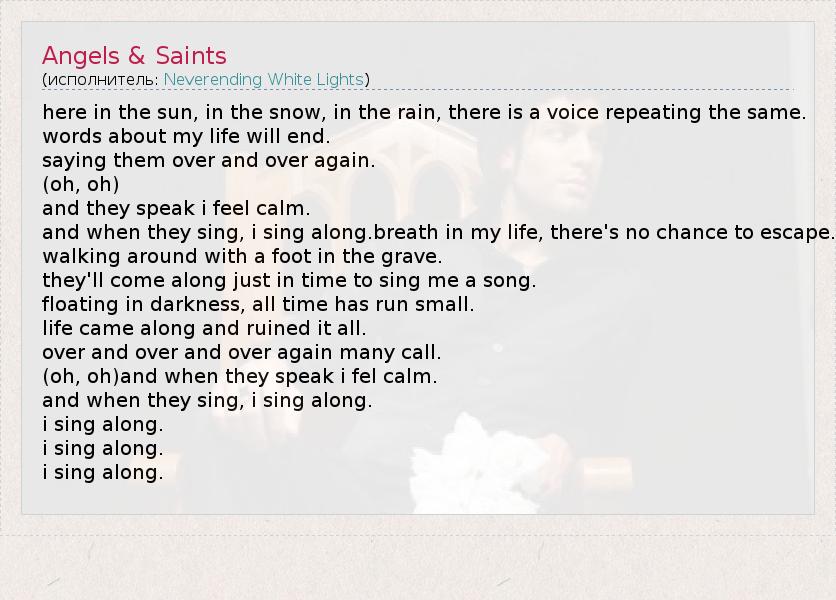 А как ты думаешь, о чем песня "Angels & Saints" ?