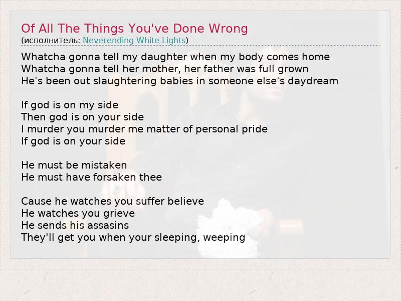 А как ты думаешь, о чем песня "Of All The Things You've Done Wrong" ?