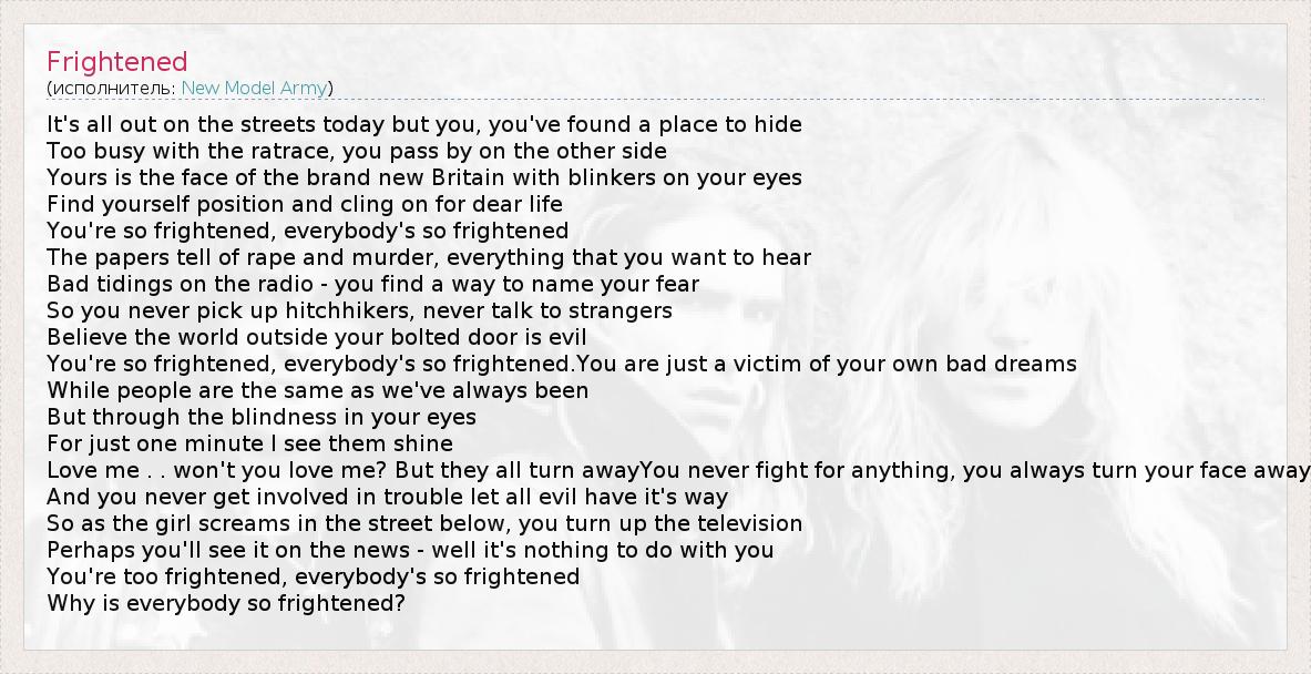 А как ты думаешь, о чем песня "Frightened" ?
