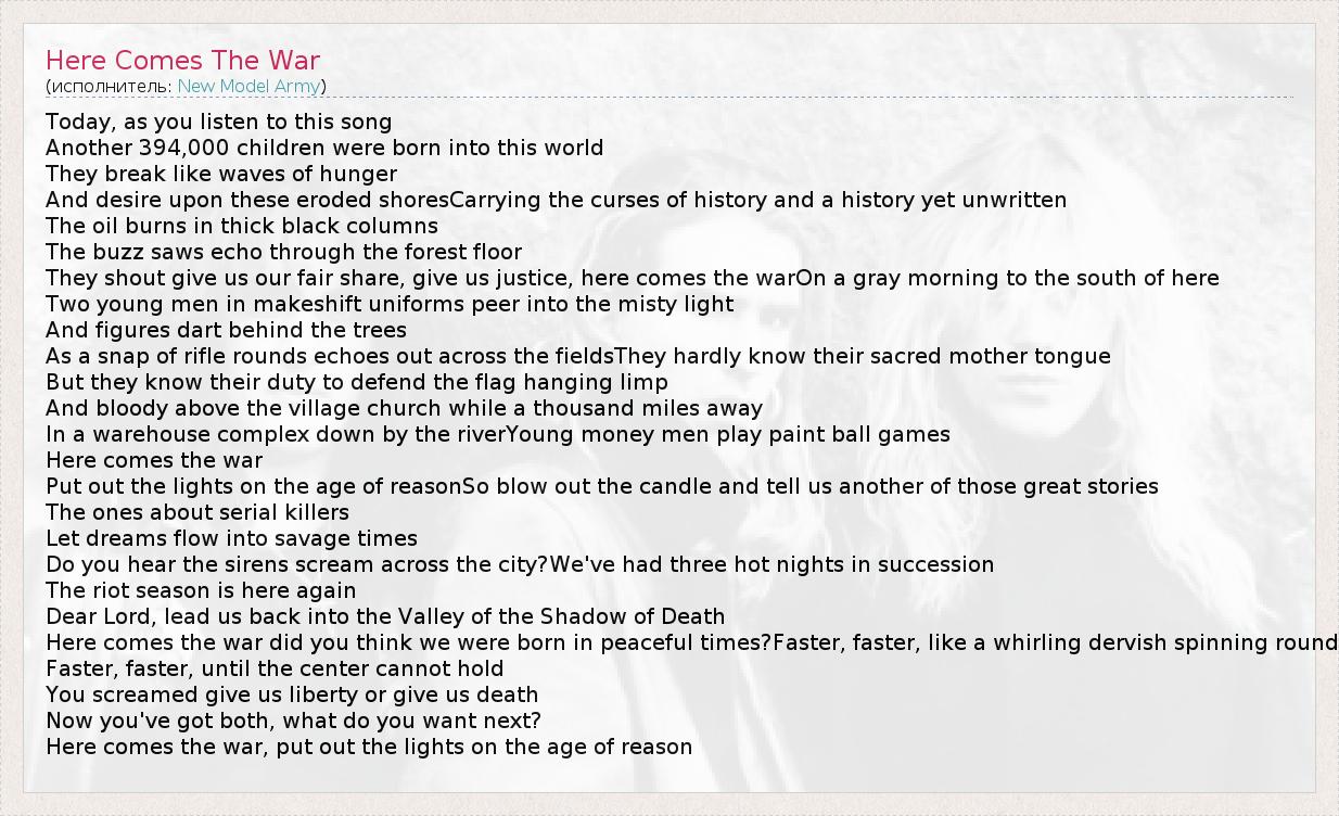 А как ты думаешь, о чем песня "Here Comes The War" ?
