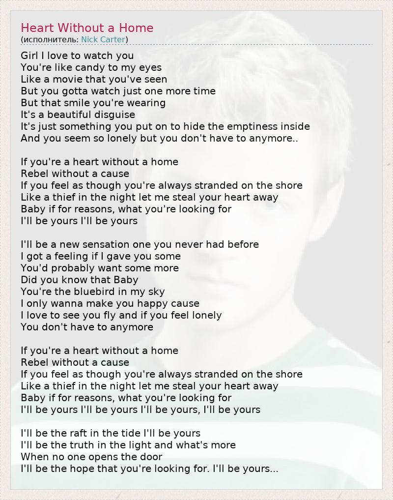 А как ты думаешь, о чем песня "Heart Without a Home" ?