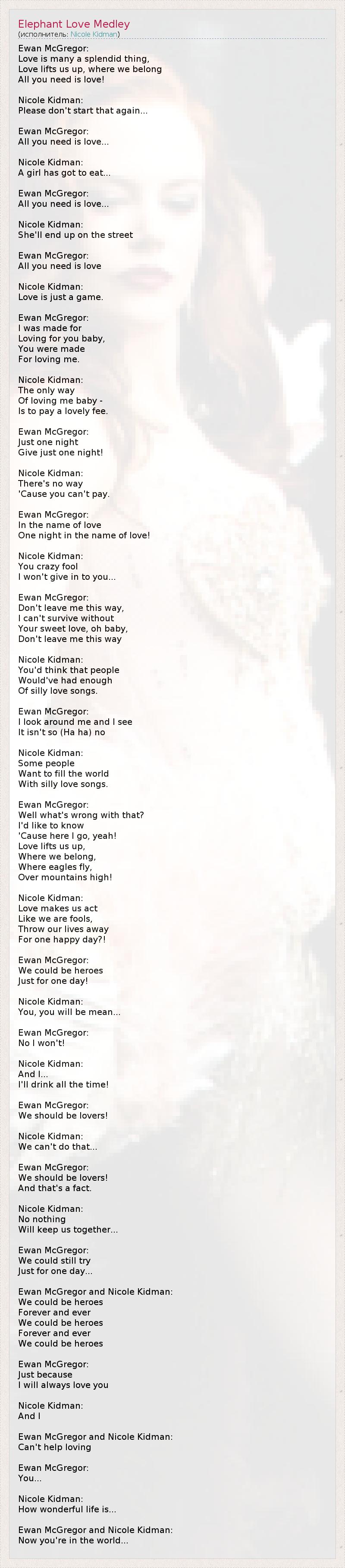 А как ты думаешь, о чем песня "Elephant Love Medley" ?